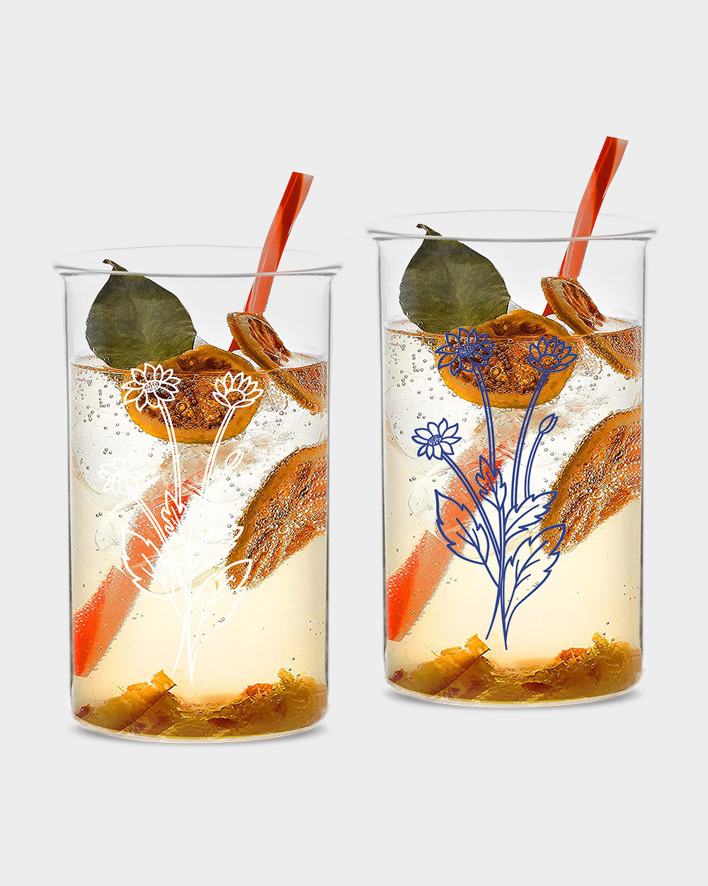 Glass Tumbler (Flower Printing) 300ml Set of 2