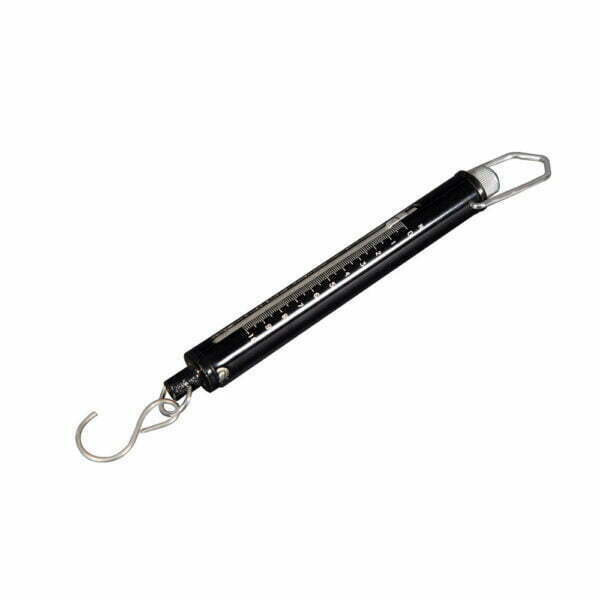 Brass barrel, with adjustable zero, suspension ring and hook.