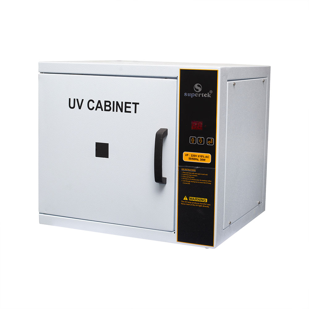 The UV Cabinet is a compact desktop disinfection unit designed for UV-C disinfection of small tools and objects. It is equipped with two internal 254 nm UV-C lamps to provide effective exposure within the chamber. The unit offers simple operation, compact dimensions, and a safety interlock system.
